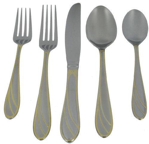 - Includes 4 each: table knife, table fork, salad/dessert fork, table spoon, teaspoon